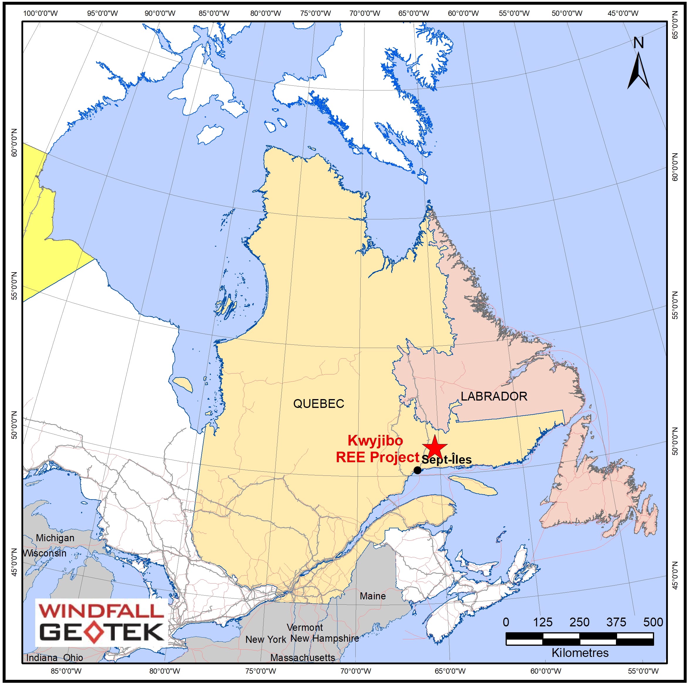 Kwyjibo REE Internal Project is located in the northeastern part of the Grenville Geological Province, on the north shore of St-Lawrence Gulf, approximately 125 km northeast of the city of Sept-Îles (QC). Kwyjibo is hosted in magnetite-rich rocks associated with the Canatiche granitic complex. The IOCG-REE deposit system comprises six historical showings, distributed in a 4 km-long corridor, with the main REE mineralization being the Josette Horizon. The Josette Horizon is divided into two zones: Josette Northeast and Josette Southwest.